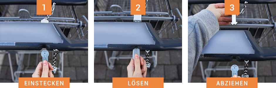 - 🛒 SOFORT ABZIEHBAR – Unser Einkaufswagenchip Schlüsselanhänger kann direkt nach der Entsicherung abgezogen & mit dem Schlüsselbund zurück in die Tasche gesteckt werden.